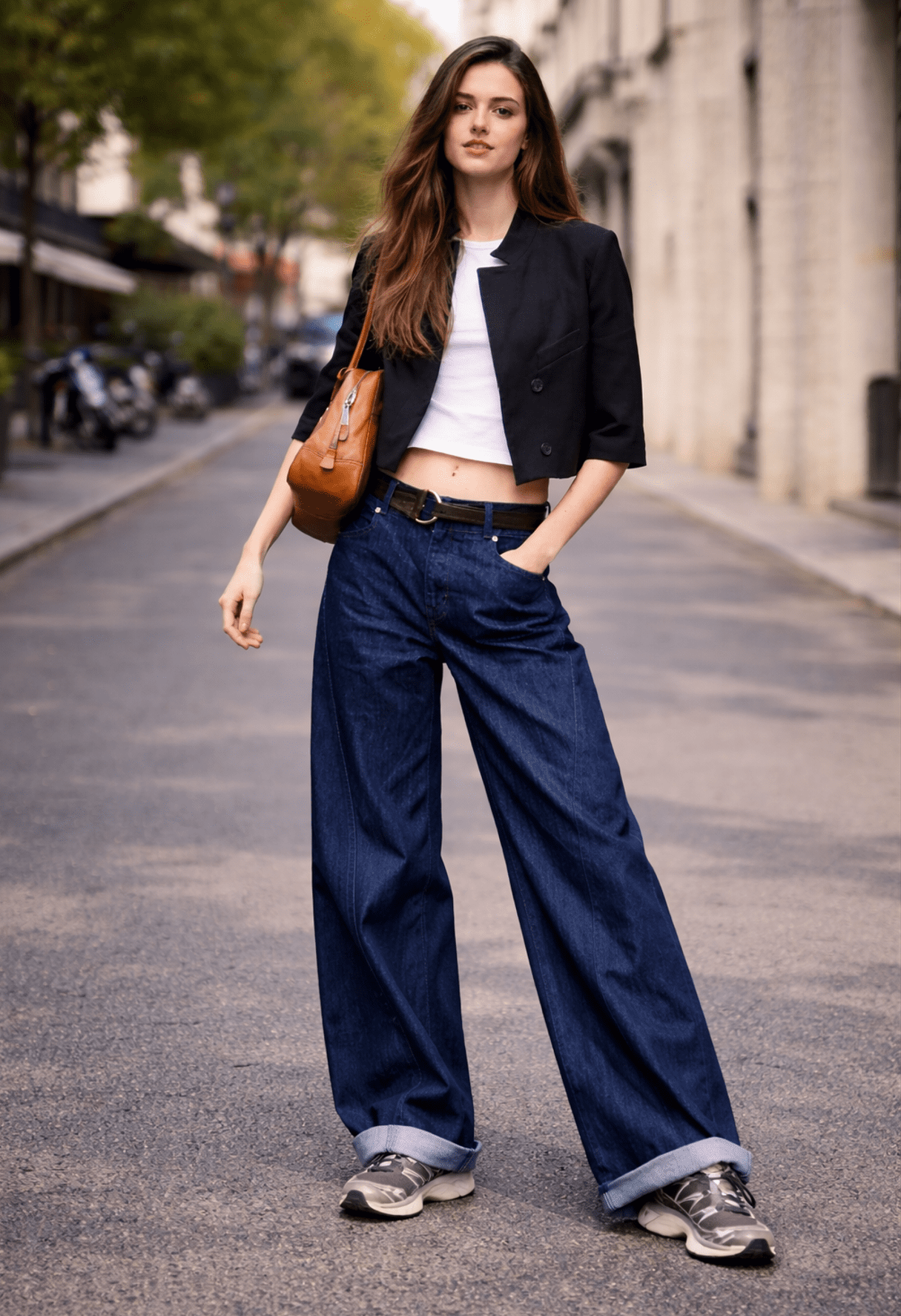 Široke kavbojke tudi letos ostajajo eden ključnih modnih kosov, ki združujejo udobje, stil in vsestranskost. Kljub temu da so se v zadnjem času ponovno uveljavili tudi kroji, kot so bootcut, slim in barrel, modeli z ohlapnimi hlačnicami ostajajo prva izbira modnih navdušenk in vplivnic.
