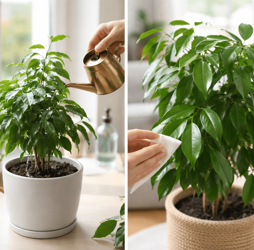 V zimskih mesecih fikus potrebuje bistveno manj vode. Pretirano zalivanje lahko dodatno ohladi korenine in poslabša stanje rastline. Zalivati je treba zmerno, šele ko se zgornja plast zemlje osuši.