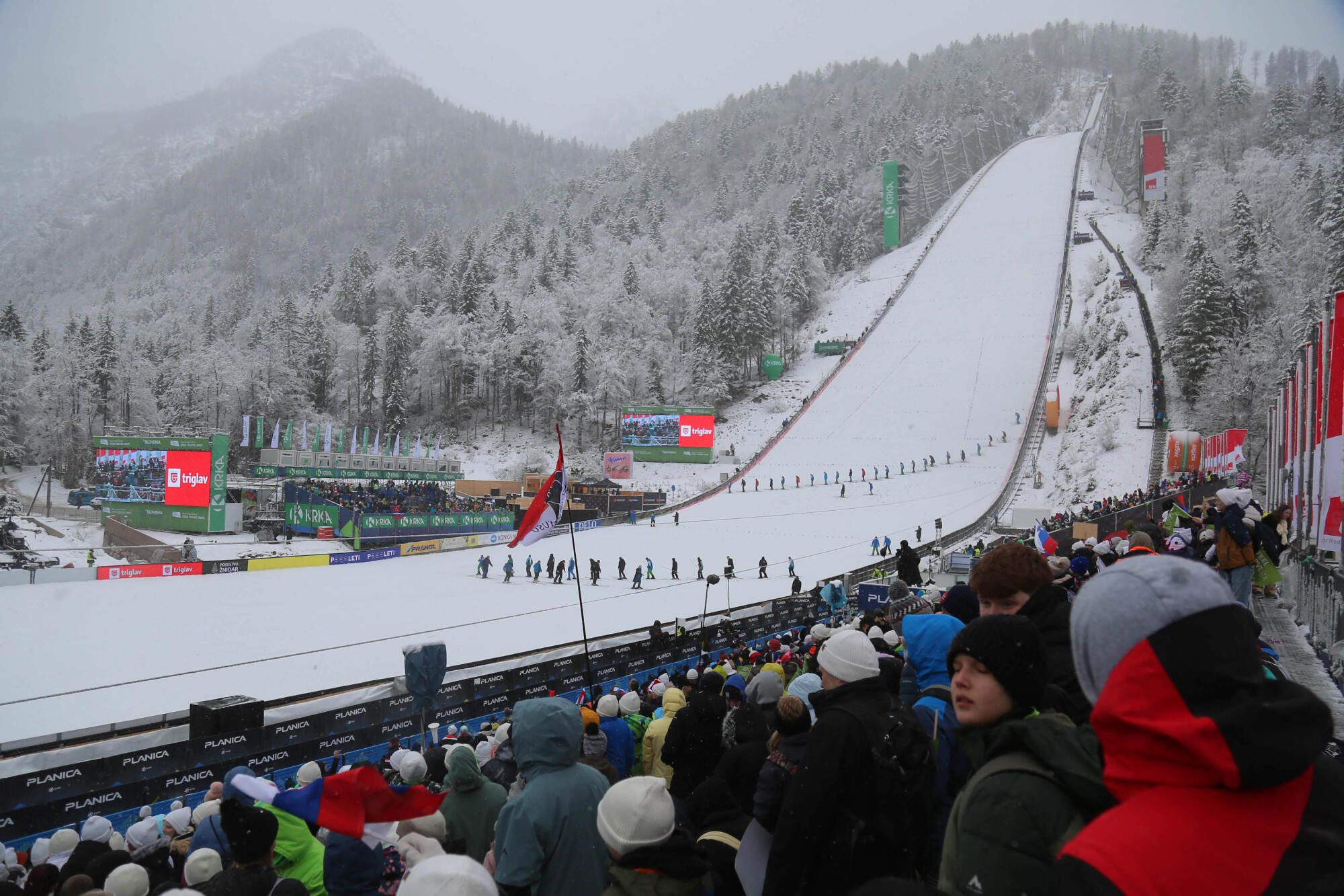 Vodja tekmovanja Sandro Pertile je medtem priznal, da vremenska napoved za današnji dan ni bila natančna, ob tem pa opozoril, da so takšni zapleti vse pogostejši in da bi lahko bile razlog tudi podnebne spremembe. “Glede današnjega dne bi se rad zahvalil vsem ljudem, ki so bili vpleteni. Za nami je dolg dan, a sem na koncu res zelo vesel, da smo izpeljali tako trening kot kvalifikacije. Prav tako je pomembno, da v tako zahtevnih razmerah ni bilo nobenih resnih poškodb. Ni bilo lahko,” je dejal in ob tem pohvalil požrtvovalnost planiških delavcev.