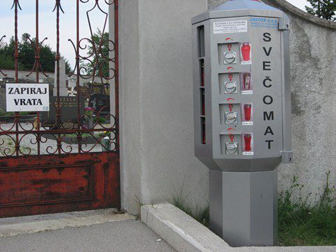 Vlomec v Komnu ukradel sveče in kovance iz svečomata