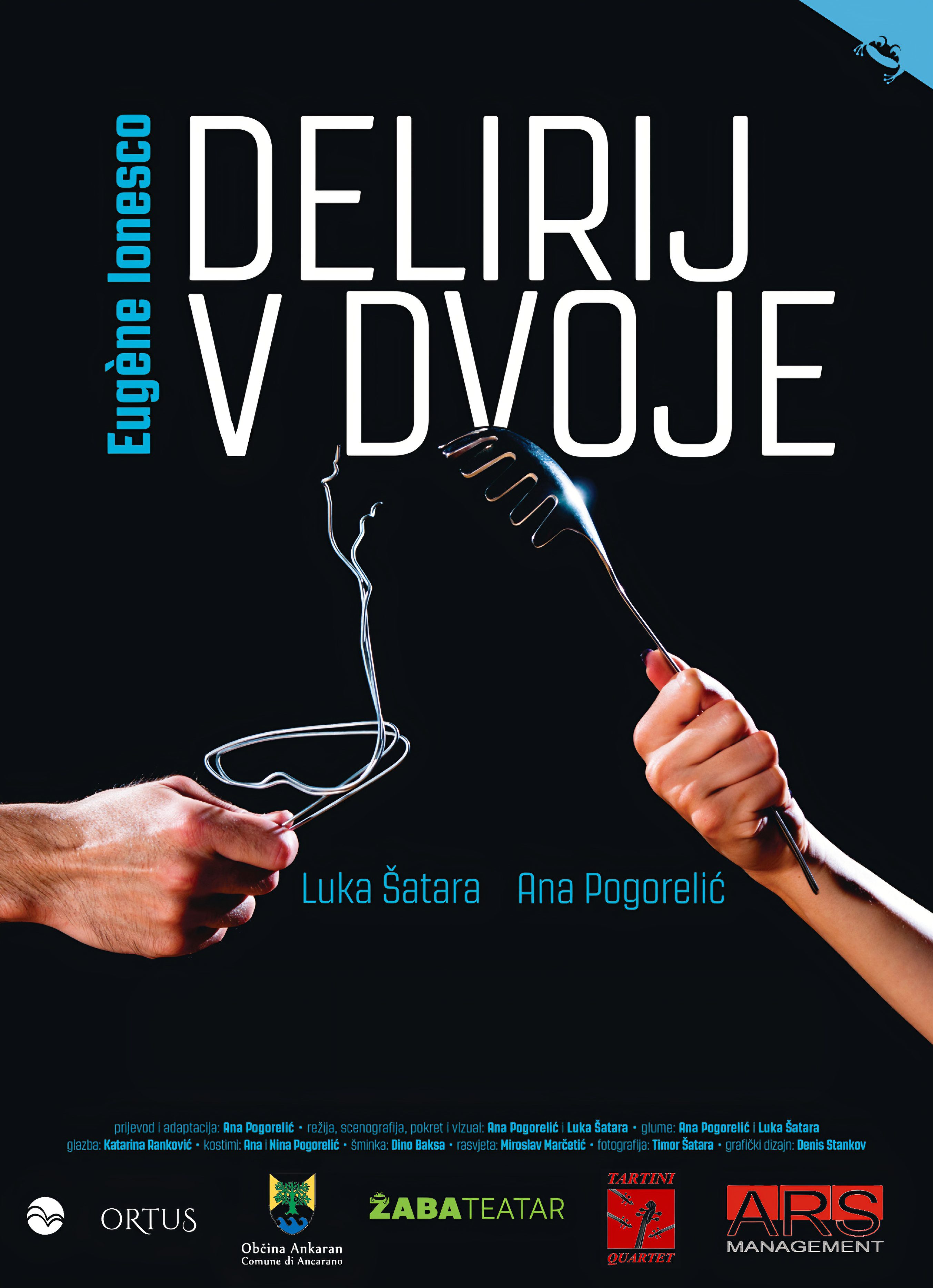 Vabimo Vas na zanimivo uprizoritev Ionescove komorne drame "Delirij v dvoje" v izvedbi Žaba teatra iz Zagreba. Predstavila se bosta odlična igralca Ana Pogorelić in Luka Šatara. Ne zamudite redke priložnosti ogleda gledališke predstave v Ankaranu. Predstava se izvaja v Hrvaškem jeziku.