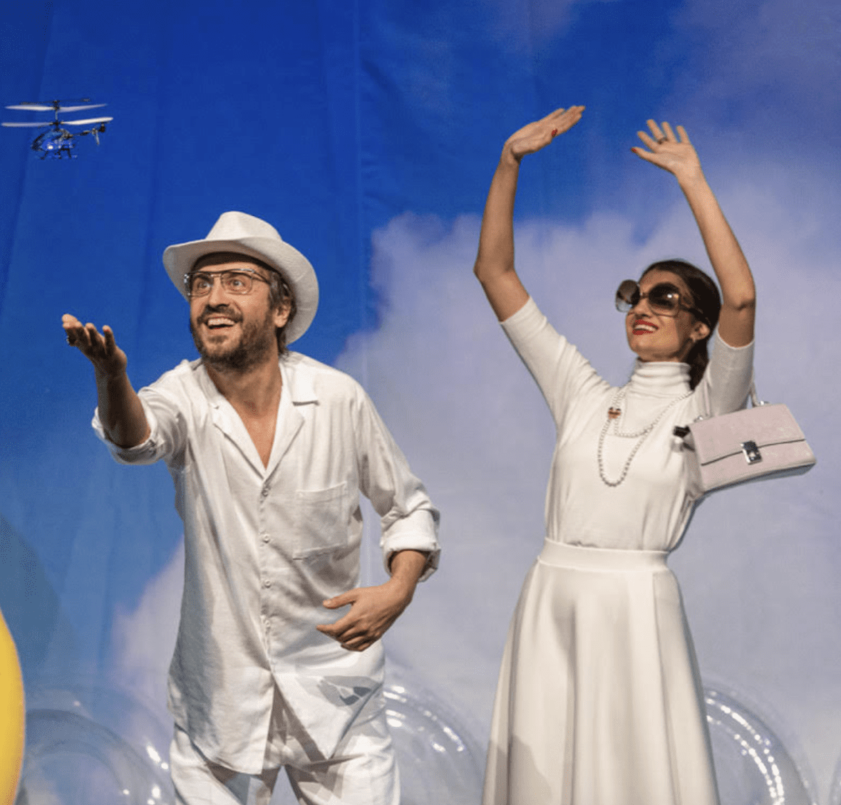 Glavni razlog za srečanje teh zakonskih parov na Brionih je bilo snemanje filma Sutjeska – to je zgodovinsko zanesljivo dejstvo. Vse drugo je plod domišljije. Predstava domišljijsko nadgrajuje in raziskuje mogoč razvoj dogodkov in razmerij ob srečanju štirih izjemnih osebnosti.