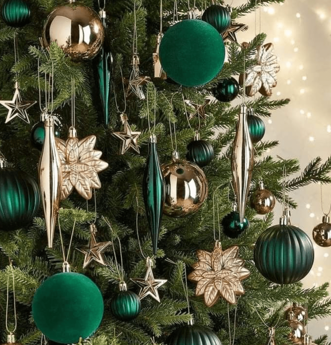 Zlata barva tudi v letu 2025 ostaja nepogrešljiv element prazničnega okrasja. Njena toplina in prestiž dopolnjujeta tako moderne kot tradicionalne prostore. Zlata se v klasični kombinaciji poda k rdeči, kot letošnji trend pa k smaragdno zeleni barvi.