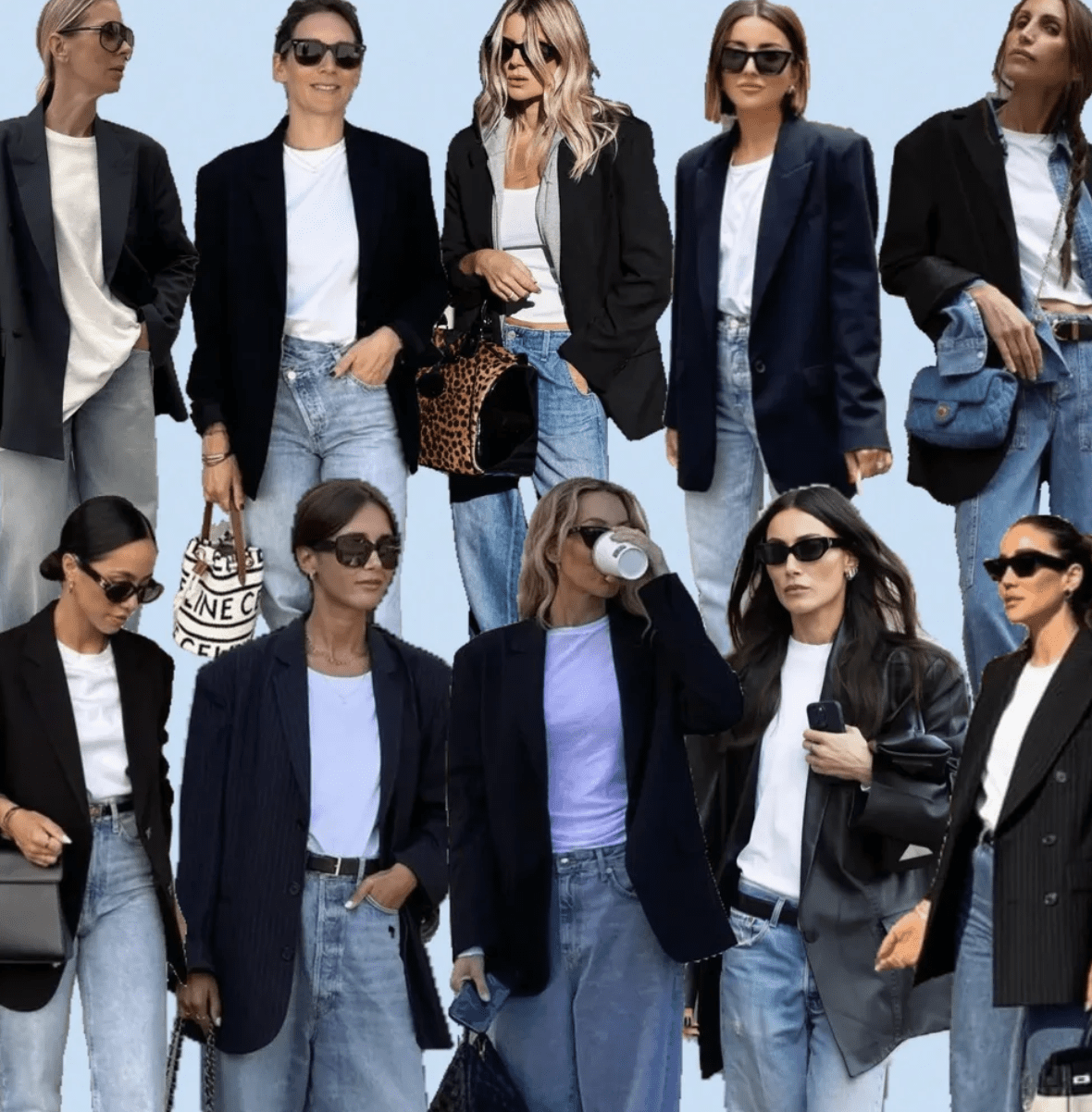 Kavbojke predstavljajo udobje in sproščenost, suknjič pa doda strukturo in eleganco. Skupaj ustvarita ravnovesje med “casual” in “chic” slogom, ki je v zadnjih letih postal eden najbolj priljubljenih modnih pristopov.