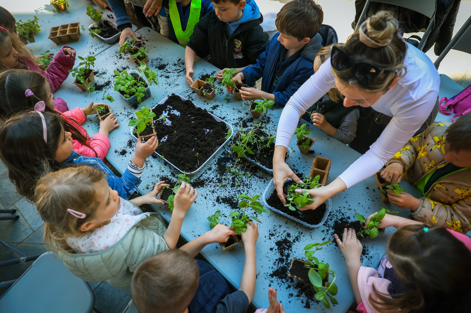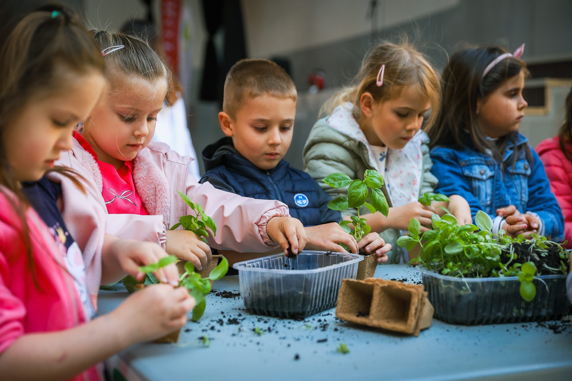 Najmlajši iz vrtca Mornarček so se skozi presajanje bazilike seznanjali z osnovami vrtnarjenja ter razvijali občutek za skrb za rastline.