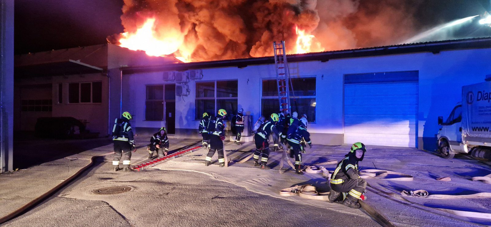 “Na požarišču ostajajo poklicna enota CZR Domžale in prostovoljna gasilska društva Pgd Radomlje, PGD Homec, PGD Studenec, PGD DOMŽALE – MESTO, ki izvajajo gasilsko stražo.