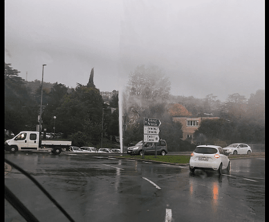 Danes so bili v središču Kopra, na krožišču pri lokalu Mandrač pod Semedelo, priča posebnemu prizoru. Domnevno zaradi počene cevi je nastala prava pravcata fontana.