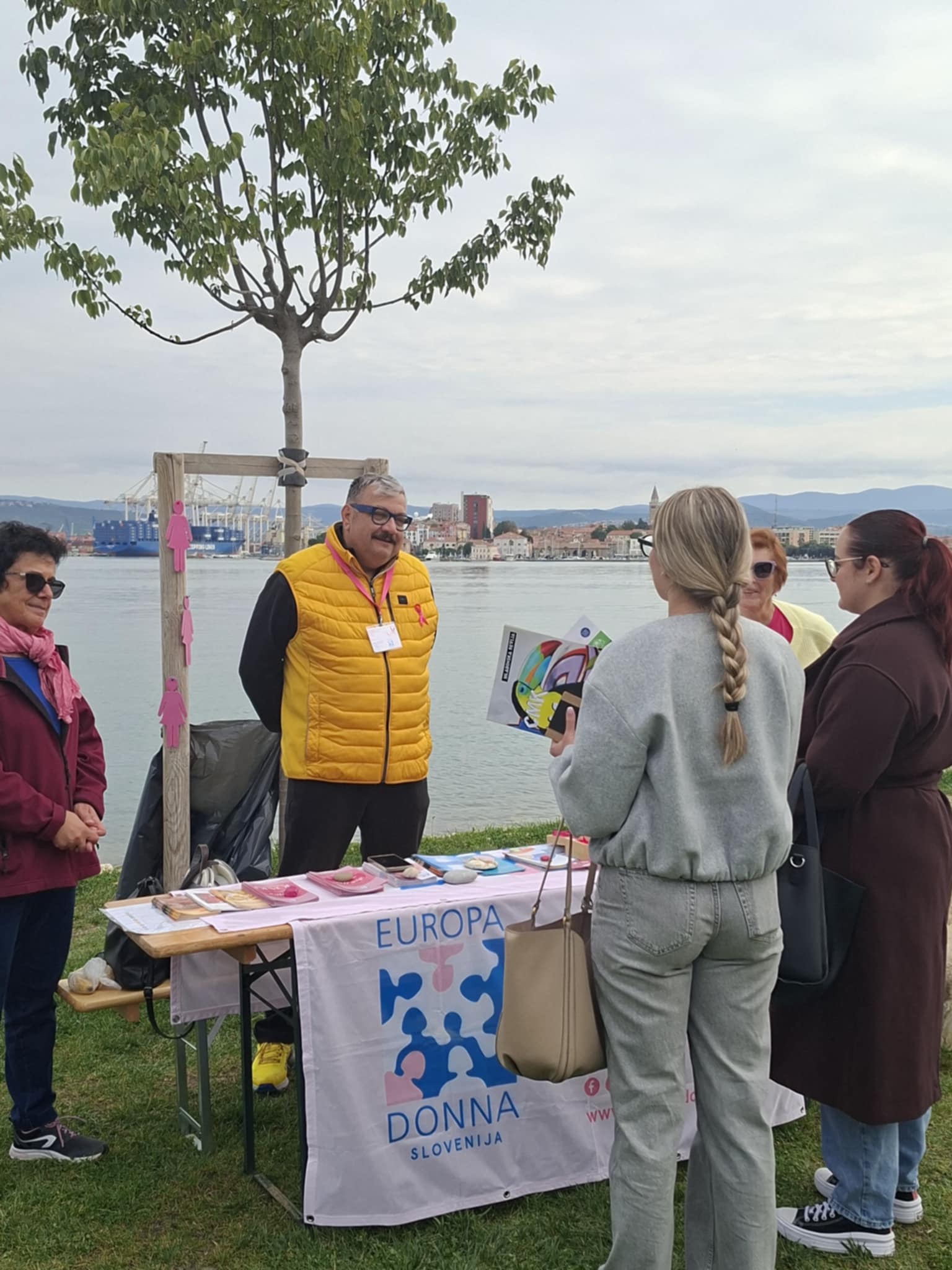 V mesecu oktobru pa to radost do življenja, obenem pa izkušnje posredujejo vsem nam na številih javnih dogodkih: »Vse naše delo je prostovoljno. Vsako leto Europa donna organizira izobraževanje prostovoljcev in priključuje se nam jih vedno več. Pomagajo pri delu na stojnicah in osveščanju prebivalstva. Letos se nam je pridružil tudi prvi moški, Simon Mavčec, ki nam pomaga tudi pri sponzorstvu, operativnih zadevah in delu na stojnici. Pridružil se nam je, ker mu je umrla žena zaradi raka na dojki in tako želi pomagati in prispevati k boljši osveščenosti prebivalcev.«