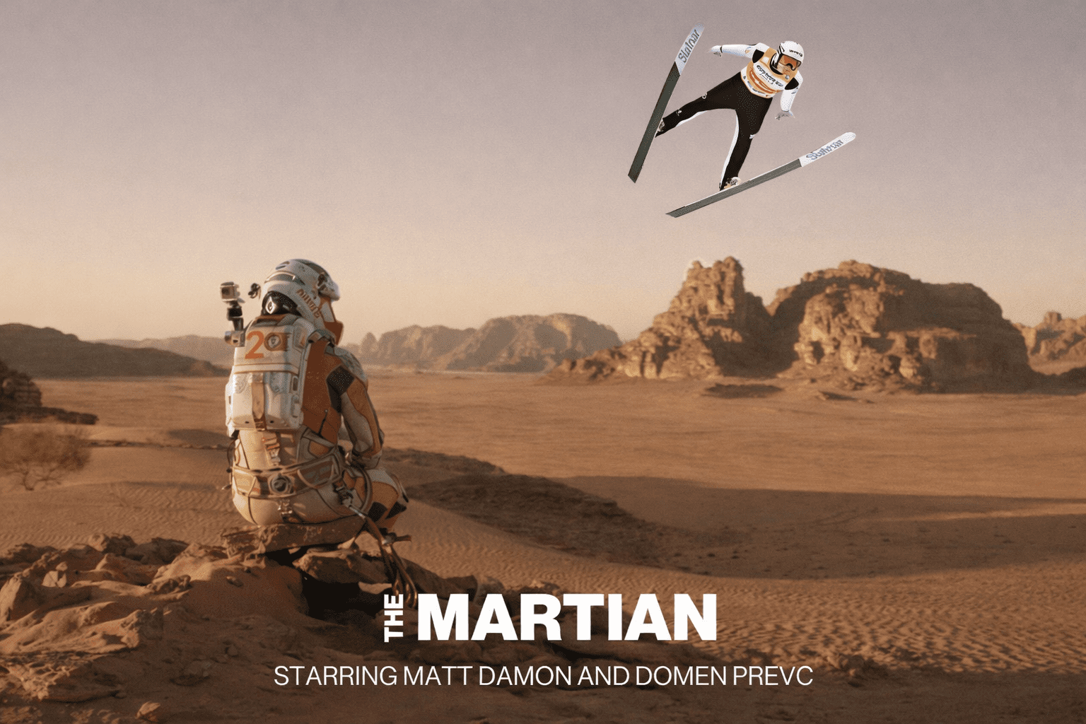 Po včerajšnji zmagi pa so šli korak dlje – dobesedno v vesolje. V novi objavi so Prevca umestili v prizor iz filma Marsovec in ga simbolično postavili ob bok liku, ki ga v filmu igra Matt Damon. S tem so namignili, da bi bil slovenski letalec morda celo najprimernejši kandidat za polet na rdeči planet.
