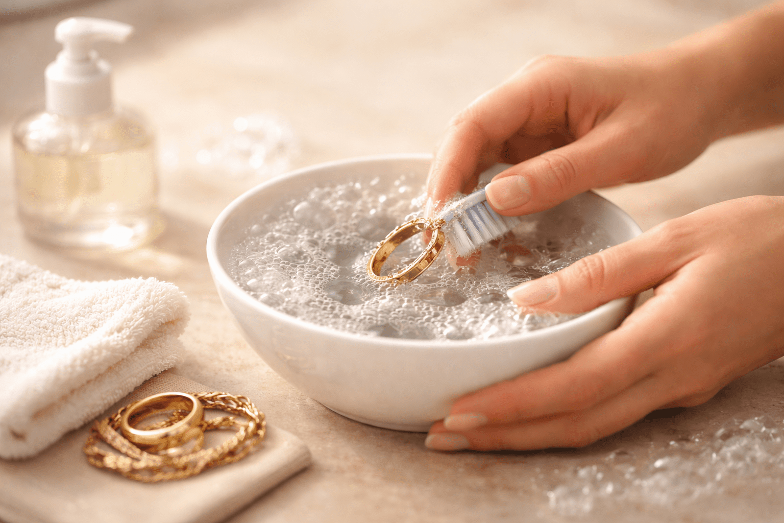 Zlati nakit, tudi 14k in 18k, lahko ob redni negi ohrani sijaj. Tukaj so trije preprosti načini: