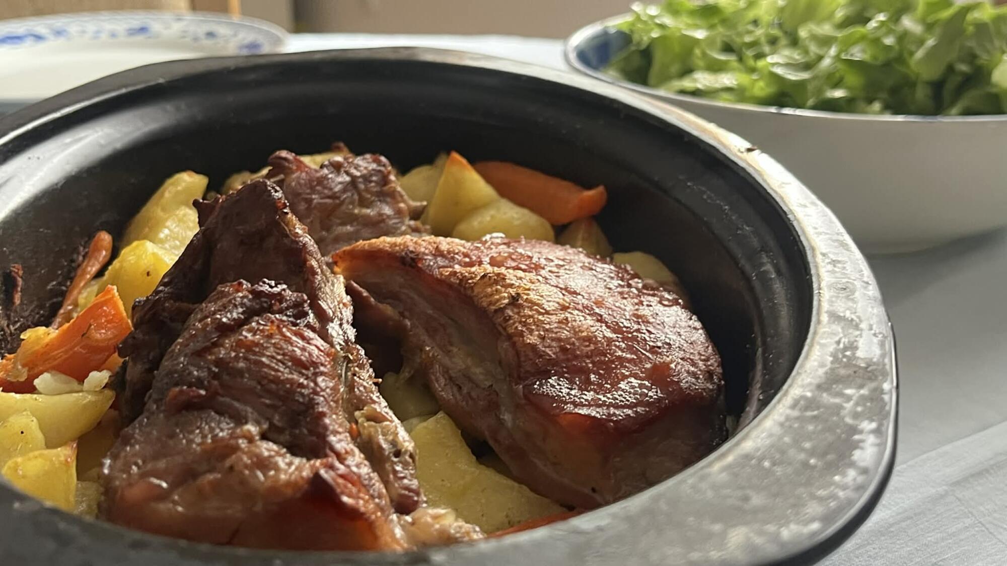 Sočni kosi svinjine se pečejo skupaj z zelenjavo, ki vpije vse sokove in začimbe – rezultat pa je popolna domača jed iz ene posode.
