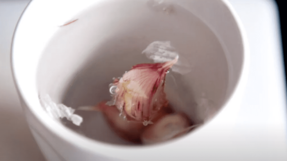 Očistite česen, ga sperite pod tekočo vodo in vsak strok prepolovite, da hitreje spusti sok. Strokove dajte v steklen kozarec in prelijte z enim litrom vode. Zaprite in pustite v hladilniku približno eno uro. Napitek je nato pripravljen za uporabo.
