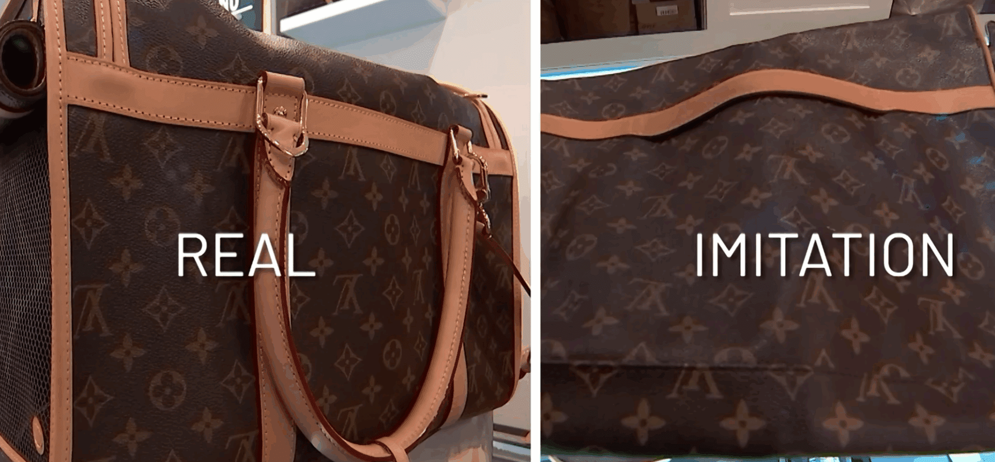 Pri Louis Vuittonu je vzorec monograma strogo določen in simetričen. Odsotnost oznake »Made in Italy« ali »Made in France« je lahko dodatni znak za alarm.