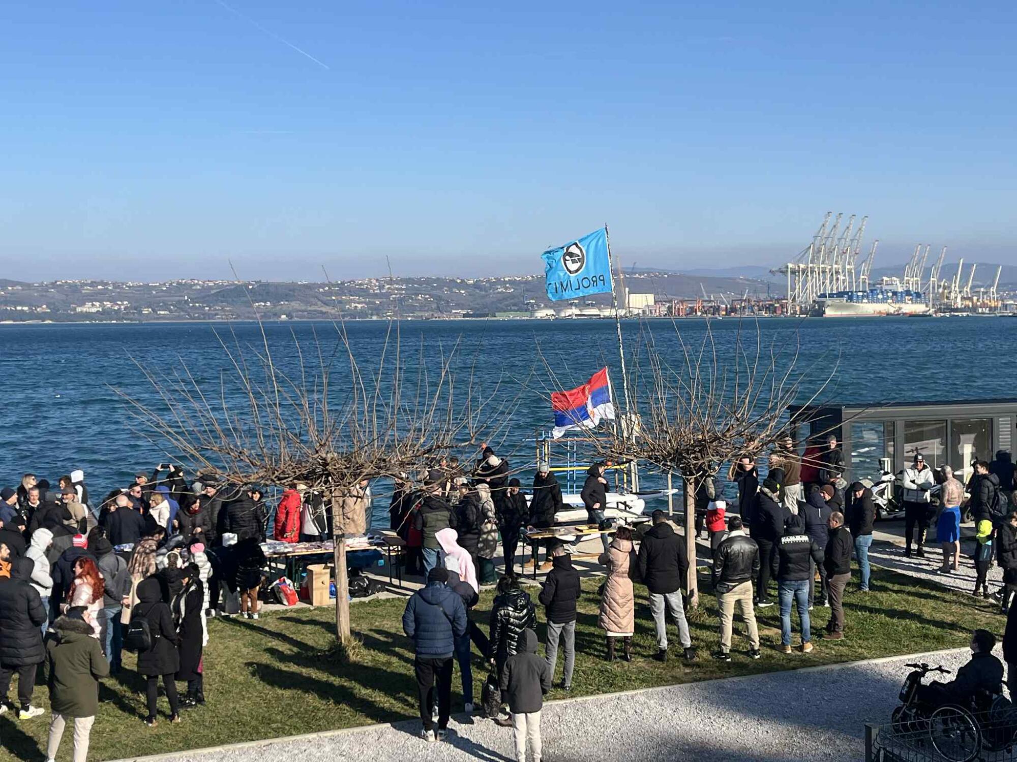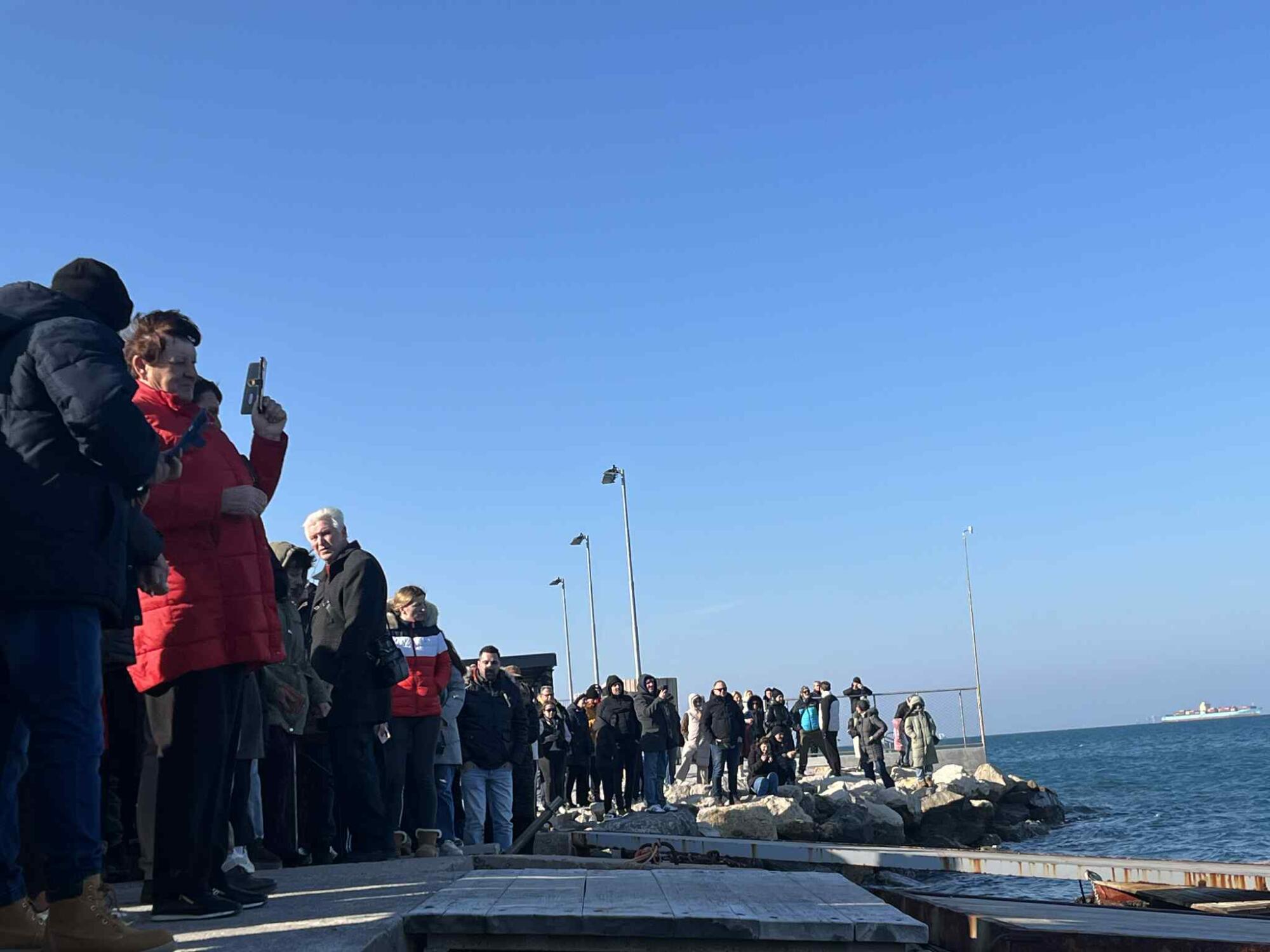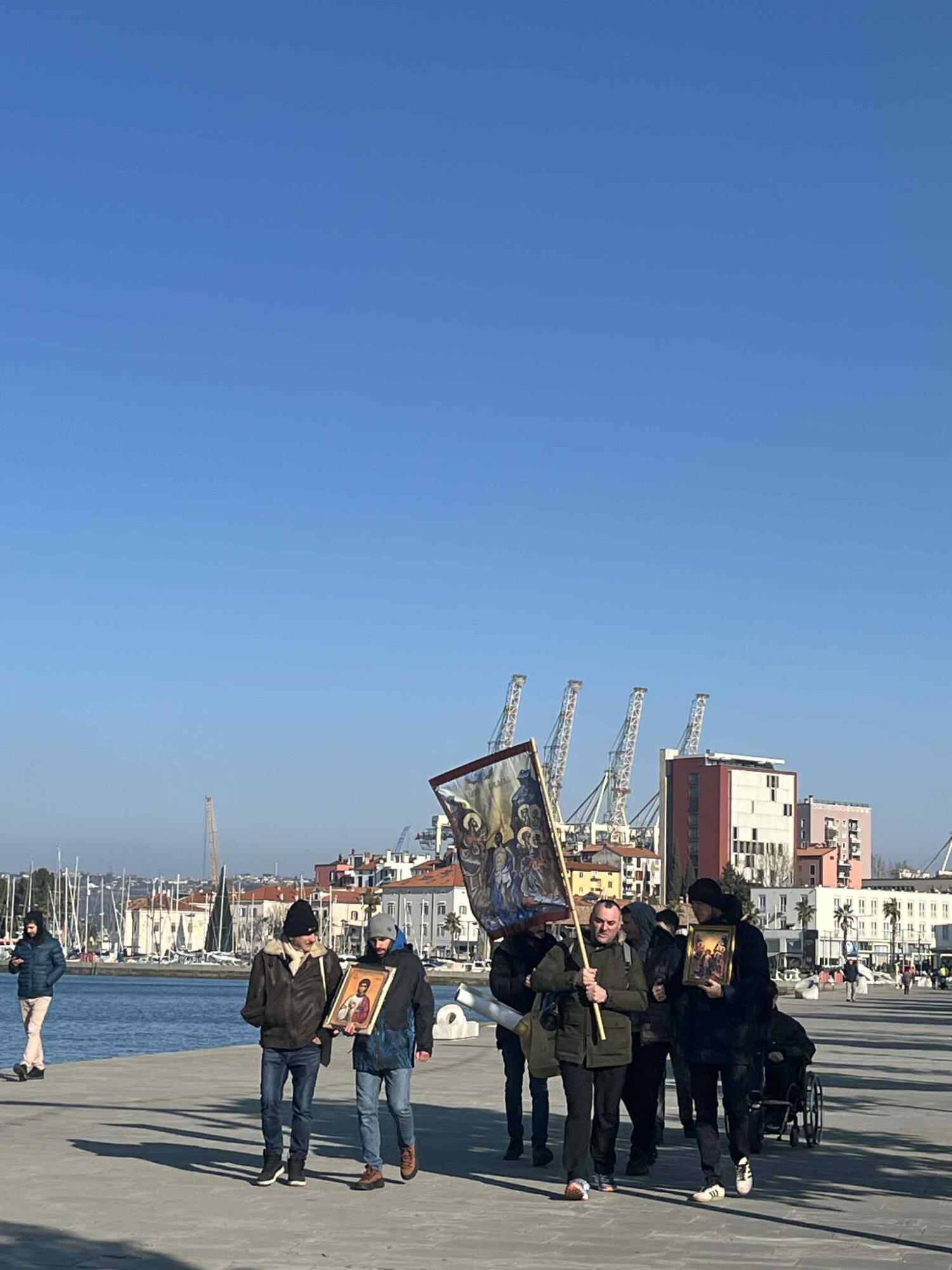 Po liturgiji so se številni obiskovalci, med njimi tudi udeleženci plavanja, zbrali v Žusterni. Temperatura morja je bila okoli 10 °C, hladna burja pa je dala jasno vedeti, da je še vedno januar. Nekaj pred 13. uro so se verniki na pomolu pripravili, da zaplavajo 33 metrov do častnega Križa.