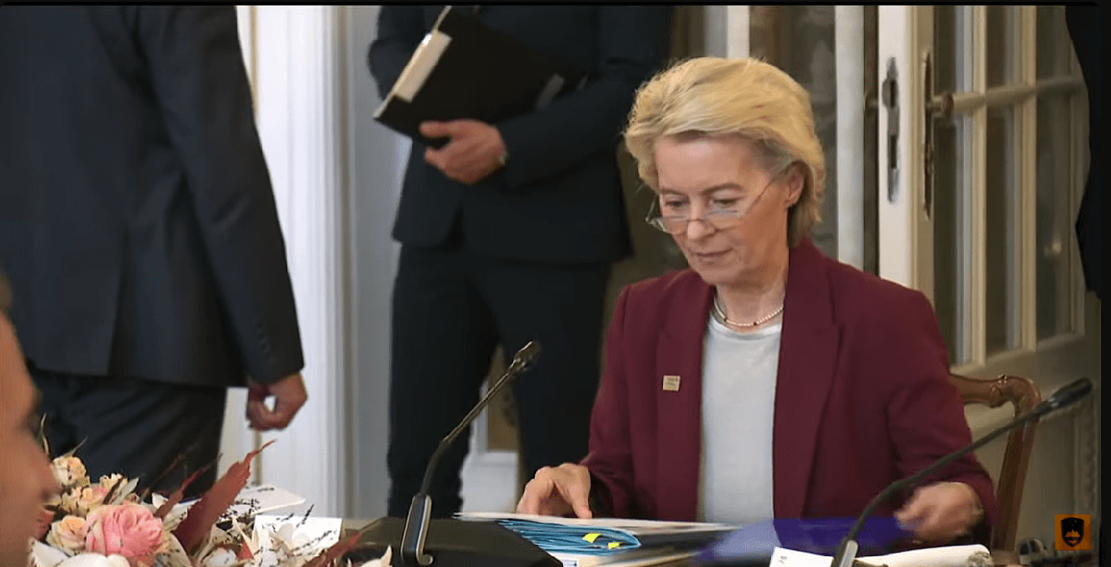 V Portorož je prispela tudi von der Leyen, ki se je že pred začetkom zasedanja srečala z Golobom na delovnem zajtrku.