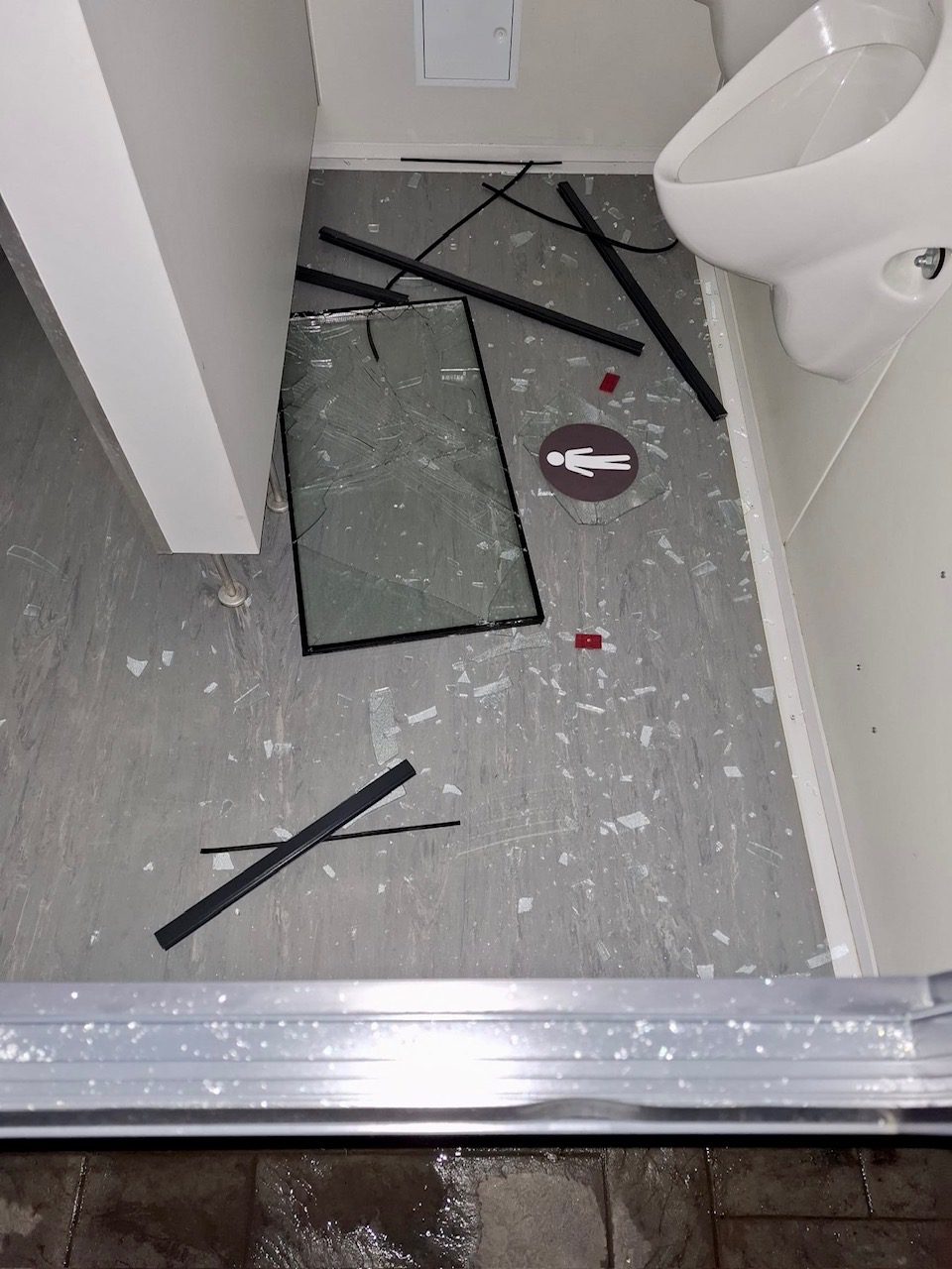 Dodali so, da so nova stekla že naročili, do njihove dobave pa so vrata začasno zavarovali z lesenimi ploščami, da zagotovijo osnovno varnost.