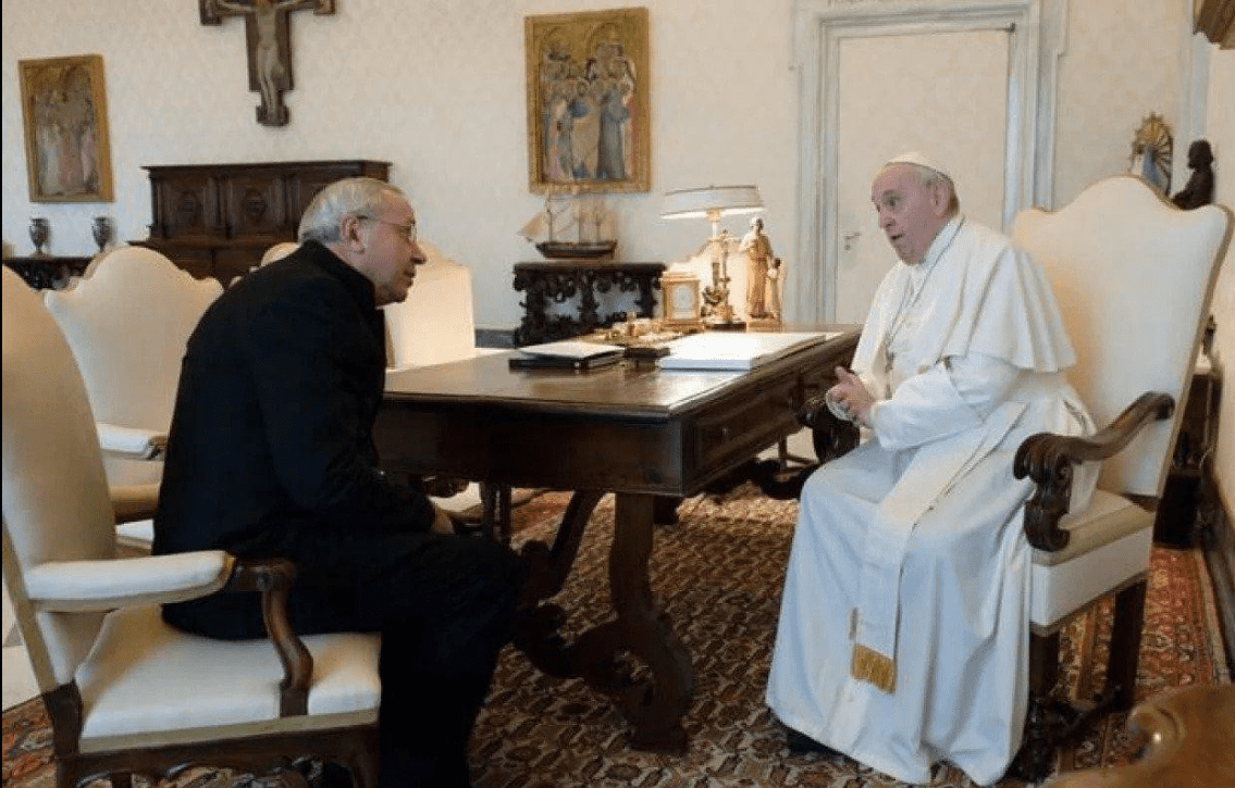 Poleg tega je videoposnetek, ki so ga januarja letos objavili vatikanski mediji, prikazoval Frančiška, kako v svoji sobi govori katoliški skupnosti v Gazi, medtem ko je Rupnikovo umetniško delo viselo na steni za njim.
