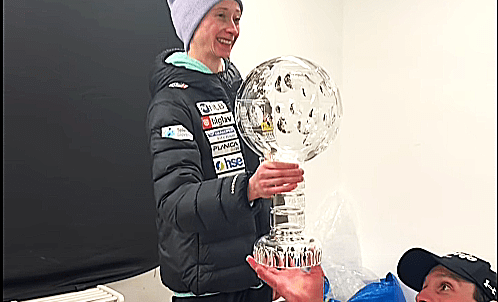 Med fotografiranjem po koncu tekmovanj je Nika v rokah držala veliki kristalni globus, ki tehta okoli devet kilogramov. Zaradi njegove teže ga je komaj obdržala v stabilnem položaju, nato pa je brez odlašanja pristopil njen brat Domen.