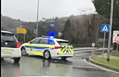 Bralec nam je poslal posnetek, v katerem je razvidno, da je proti Strunjanu nastal velik zastoj, zato policijsko vozilo onemogoča izhod iz krožišča.